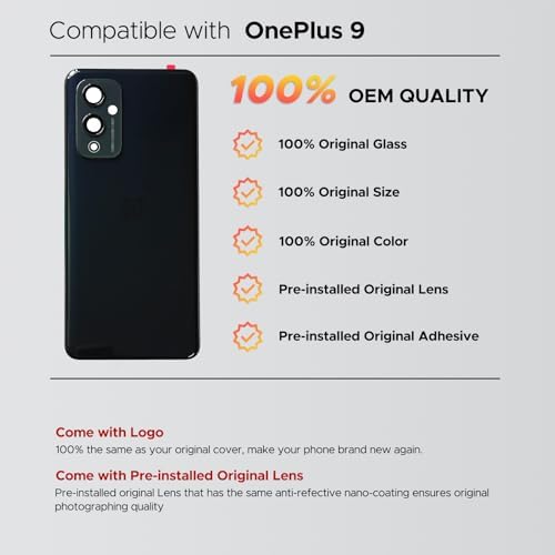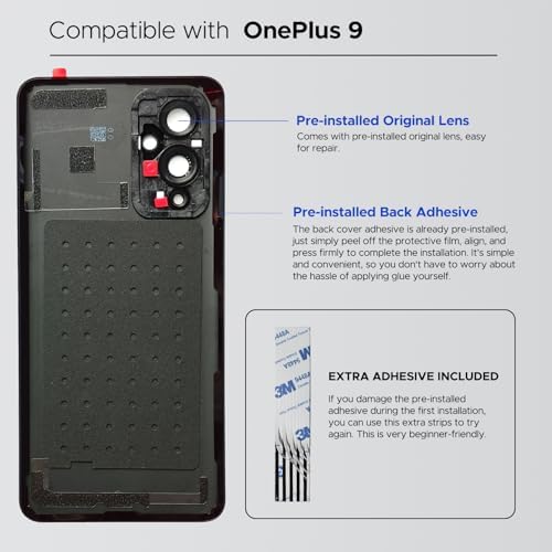 Sponsored Ad - Compatible with OnePlus 9 Back Cover Replacement, OnePlus 9 Back Housing Door with Pre-Installed Camera Lens, Repair Tools & Instruction, Astral Black