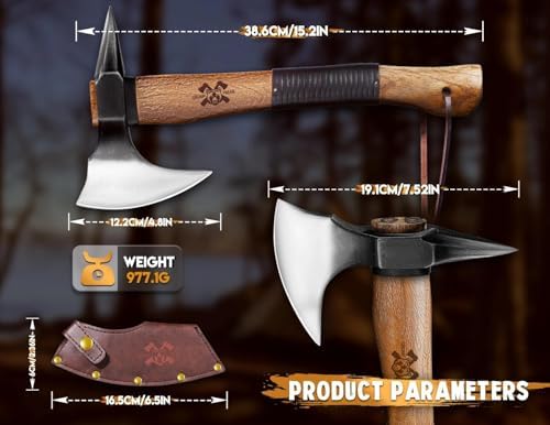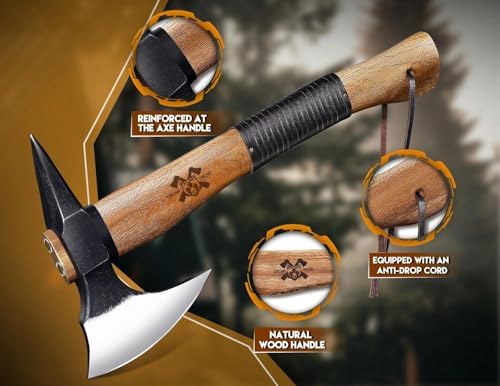 Sponsored Ad - Grumpy Bear 15" Survival Axe – Forged High Carbon Steel Hatchet with Spike Tail for Breaking Doors, Glass & Ice, Leather Handle & Lanyard, Ideal for Bushcraft & Outdoor Adventures