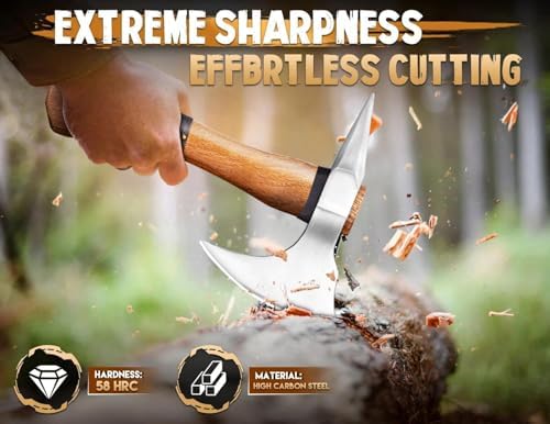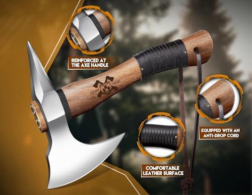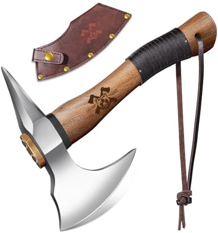 Sponsored Ad - Grumpy Bear Camping Axe 11 Inches with High Carbon Steel, Smooth Blade, Leather-Wrapped Handle, Safety Lanyard – Ideal for Wood Splitting, Hiking, Survival, and Outdoor Adventures