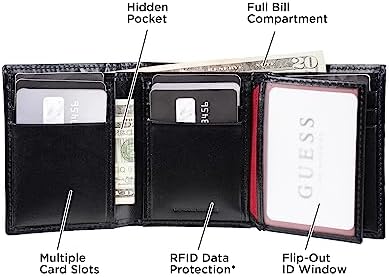 Men's Leather Trifold Wallet, Black Chavez, One Size