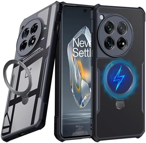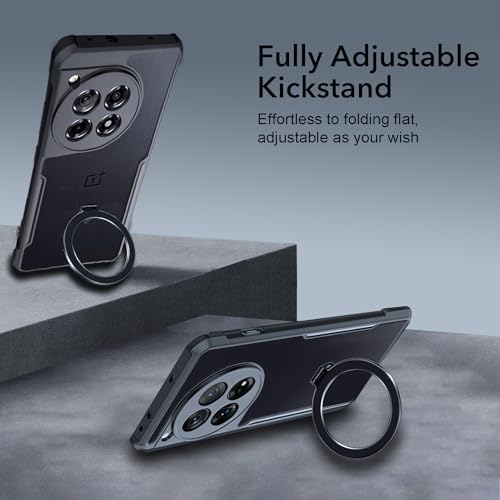 for Oneplus 13r Case with Ring Stand Holder Compatible with Accessories Like The Magsafe Charger,Wallet,car Mount.Soft TPU Bumper + Acrylic Back Airbags Shookproof Drop Protection,Stand Black