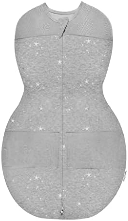 Happiest Baby Sleepea 5-Second Swaddle - 100% Organic Cotton Baby Swaddle Blanket - Doctor Designed Promotes Healthy Hip Development (Graphite Stars, Small)