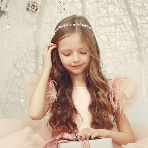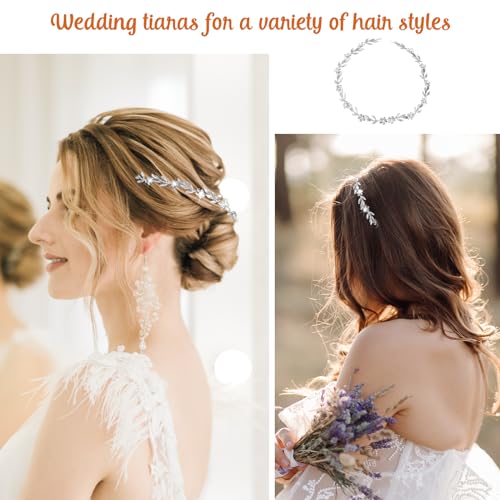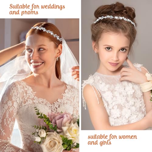 Crystal Leaf Pearl Hair Vine Tiara Headpiece with Flower Headband for Wedding Brides and Women - Silver