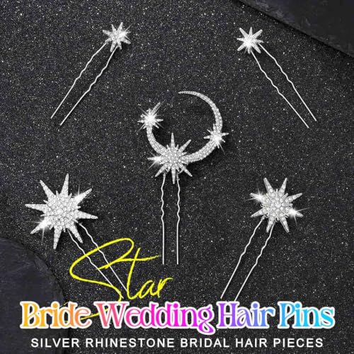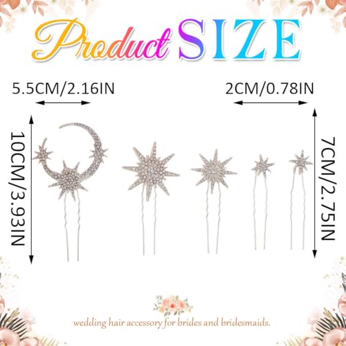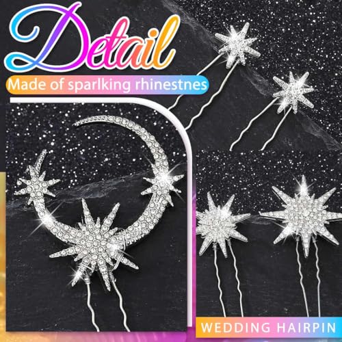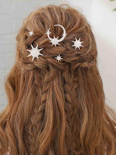 HEREAD Star Crystal Bride Wedding Hair Pins Moon Hair Pieces Bridal Hair Accessories for Women and Girls (Silver)