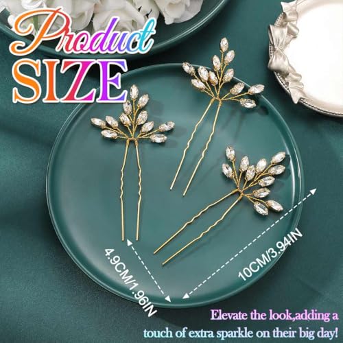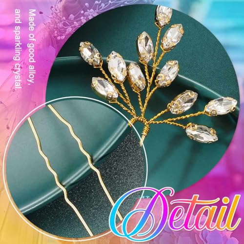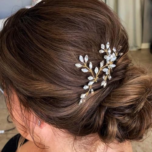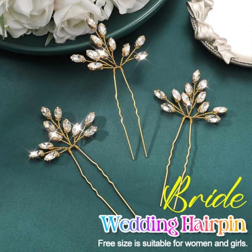 Heread Crystal Bride Wedding Hair Pins Rhinstones Bridal Hair Accessories Head Piece for Women and Girls (Pack of 3) (C Gold)