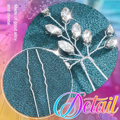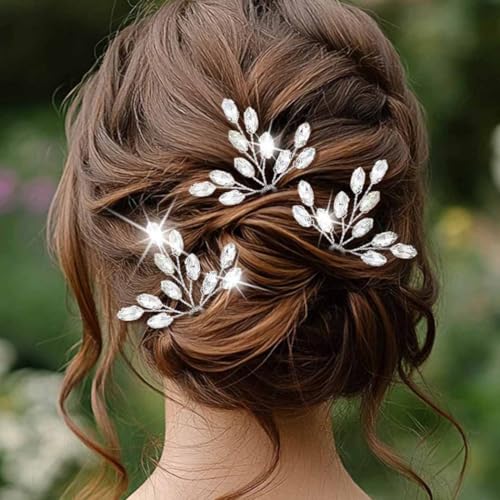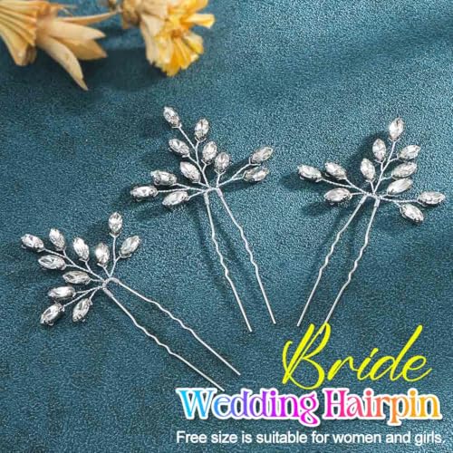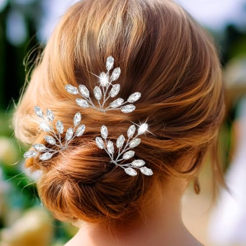 Heread Crystal Bride Wedding Hair Pins Rhinstones Bridal Hair Accessories Head Piece for Women and Girls (Pack of 3) (A Silver)