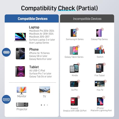 USB C to HDMI Cable for Home Office 6.6FT (4K@60Hz), High-Speed Type C to HDMI 2.0 Braided Cord, Thunderbolt 4/3 Compatible with MacBook, iPhone 16/15 Pro/Max, iMac, iPad Pro, Galaxy S24, Surface