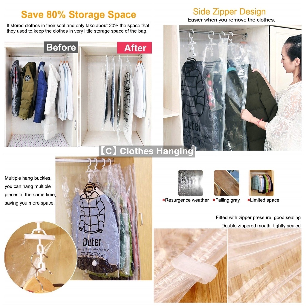 (HOME+) Vacuum Sealer Packing Bag Storage Compression For Clothes-Vacumn Vaccum Ziplock Travel