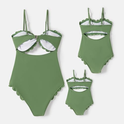 IFFEI Mommy and Me Matching Outfits Women's One Piece Swimsuits Cutout Scallop Trim Monokini Swimwear Bathing Suit