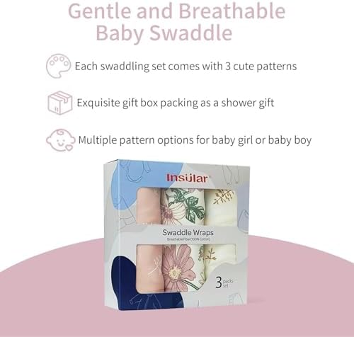insular Baby Swaddle Wrap, Swaddle Blanket for Newborn and Infant, Adjustable Velcro Swaddling Set for Boy and Girl, Soft Cotton Baby Sleep Sack 3 Pack, Floral, Small(0-3 Month)