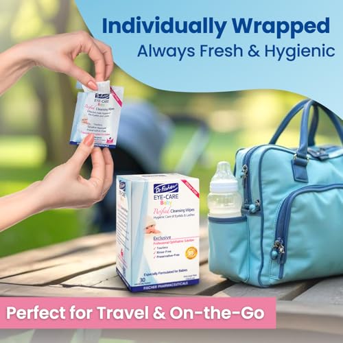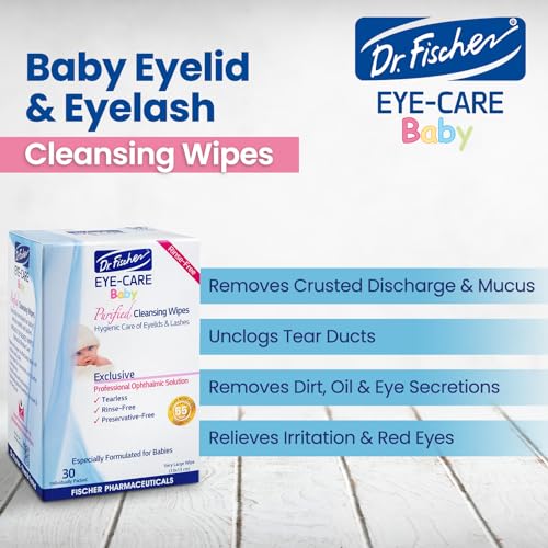 Dr. Fischer Premium Baby Eyelid Wipes, 60 Count, Pre-moistened, Hypoallergenic, Non-Irritating, Rinse Free, Pediatrician Recommended