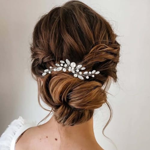 JAKAWIN Pearl Bride Wedding Hair Pins Silver Bridal Hair Clip Accessories Rhinestone Hair Piece for Women HP179 (1 Silver)