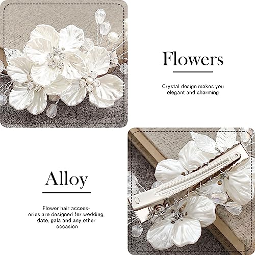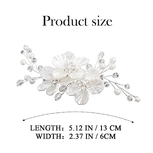 Sponsored Ad - Jakawin Bride Flower Wedding Hair Piece Silver Pearl Hair Clip Rhinestone Crystal Headpiece Leaf Bridal Hair Accessories for Women FJ01 (1 Silver)