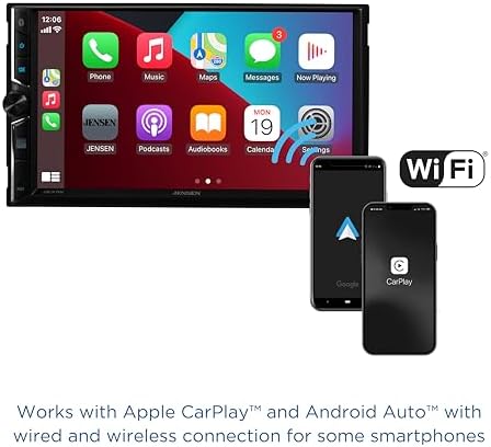 J3CA7W 7-inch Certified Apple CarPlay Android Auto Wired or Wireless | Double DIN Touchscreen Car Stereo Radio | Bluetooth | Backup Camera Input | USB Playback & Charge
