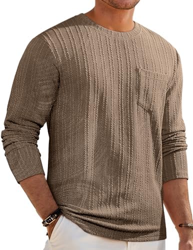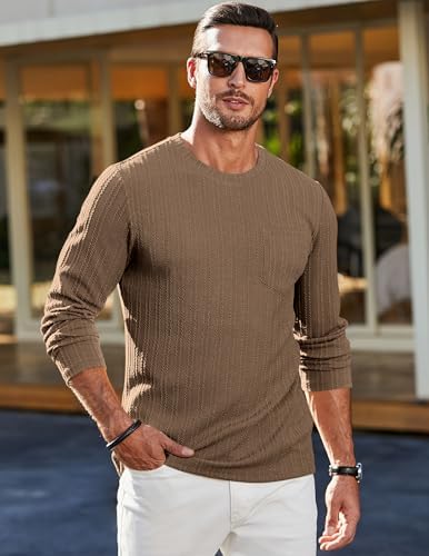 Sponsored Ad - Men's Long Sleeve Shirts Casual Crewneck Pullover T-Shirt Stretch Textured Knit Tee with Pocket