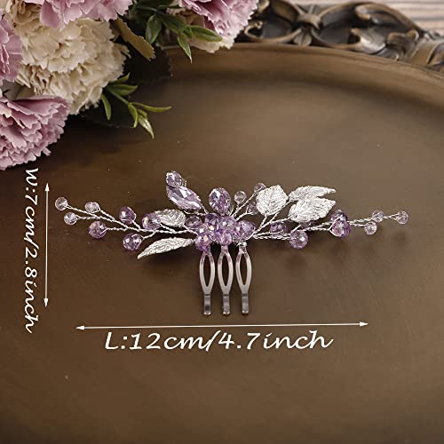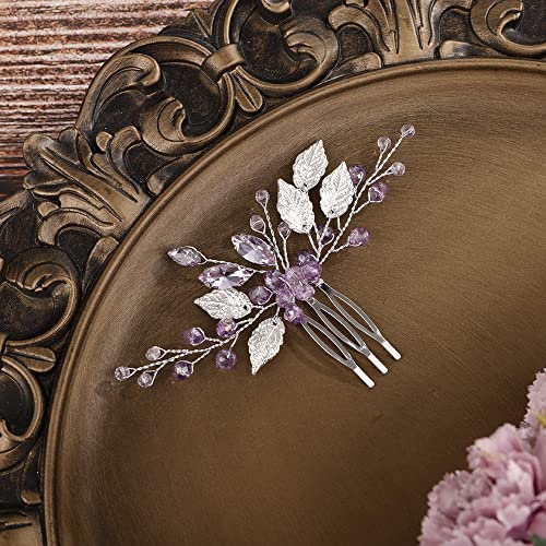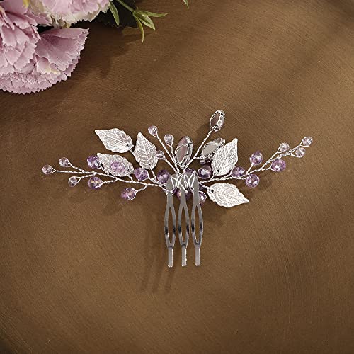 Sponsored Ad - JWICOS Beaded Crystal Hair Comb for Brides and Bridesmaids (Silver Purple)