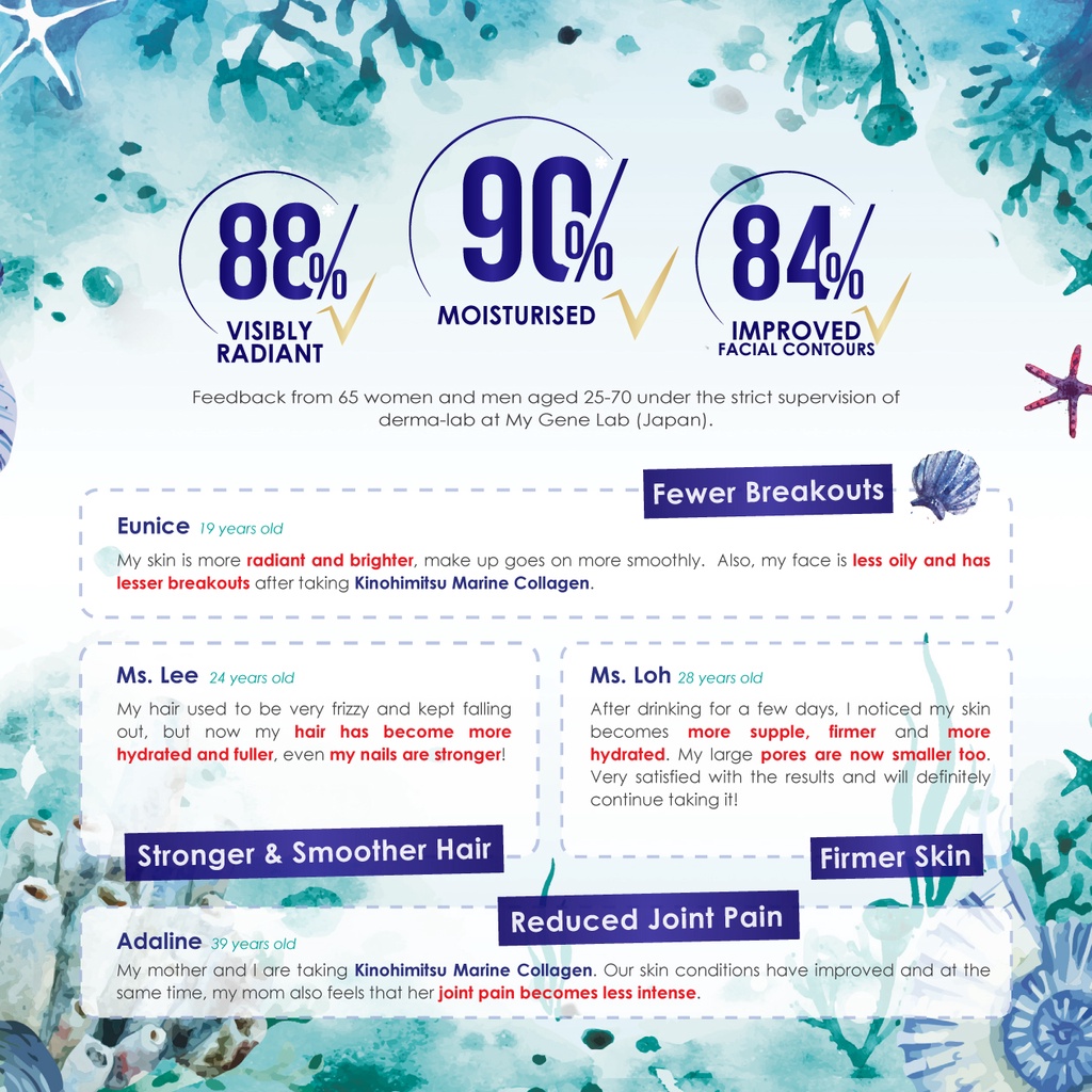 Performance:To prevent wrinkles by boosting up the collagen Suitability:Above 25 years old Prompt delivery, items received in good condition. I've been drinking collagen diamond for 2 years. This time bought marine gem collagen to try out and compare the difference. There is free scoop given inside the packet and the marine gem collagen has a nice lychee taste which is not too sweet.
