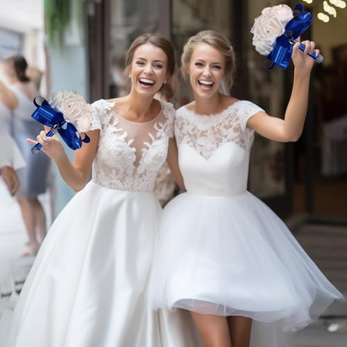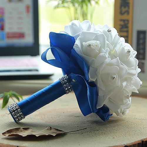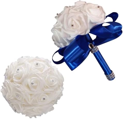 Sponsored Ad - Wedding Bouquets - Crystal Diamond Silk Roses, Bride & Bridesmaid Hand Roses for Churches & Parties (Blue)