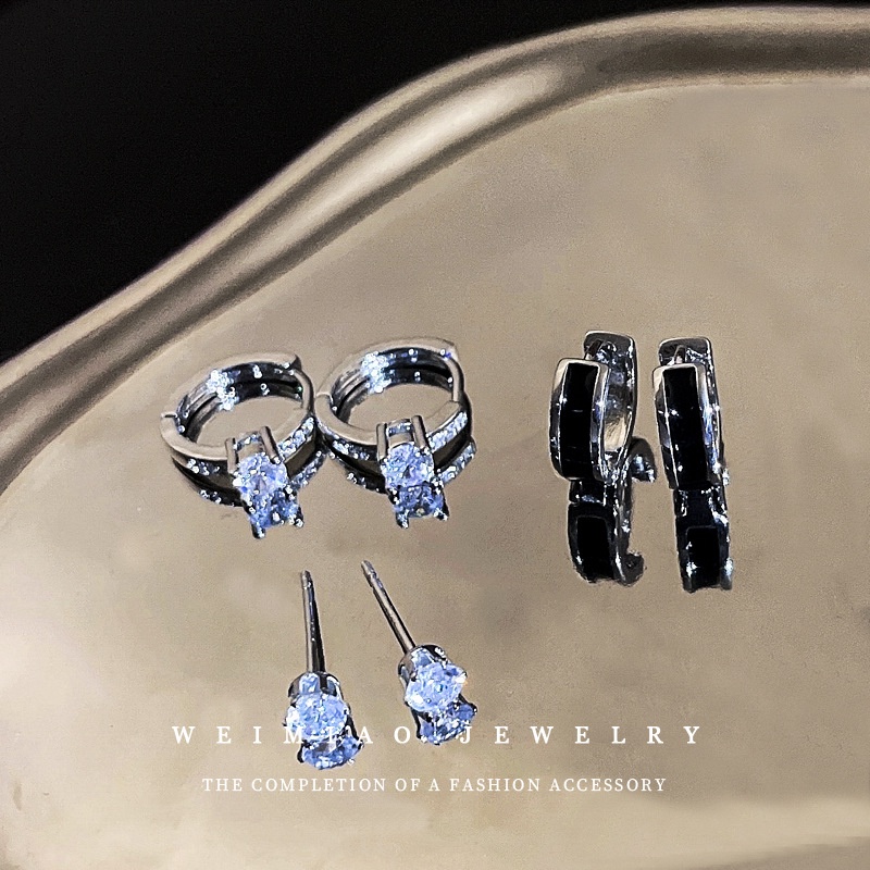 Korean Style Heart Silver Earrings Set Butterfly Pearl Zircon Stud Earrings for Women Fashion Jewelry Accessories