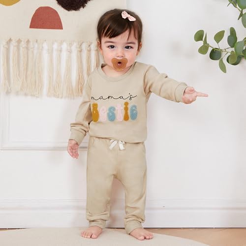 Toddler Baby Girl Fall Winter Clothes Embroidered Letter Graphic Crewneck Sweatshirt + Joggers Pants Outfits Set