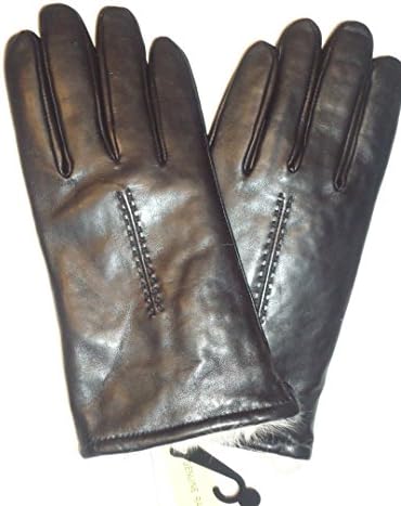 Ladies Rabbit Fur Lined Genuine Leather Gloves, Medium Black
