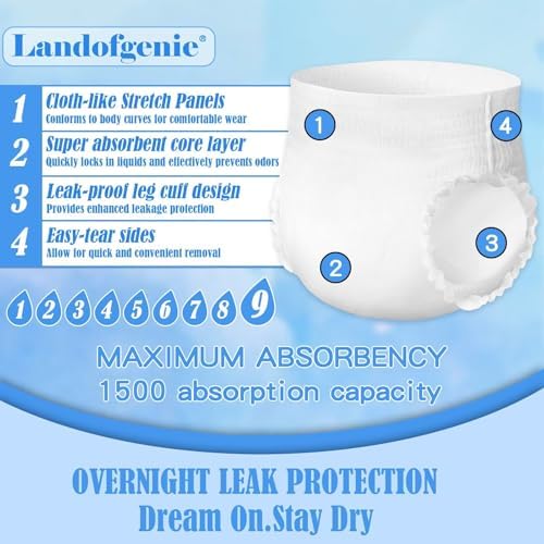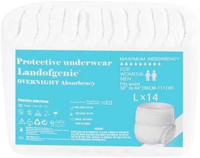 Sponsored Ad - Unisex Overnight Incontinence Underwear, High Absorbency Leak Cuff Protection Adult Diaper, Pull-On Underwear for Men & Women, White, 14 Count, L(38″-44″)