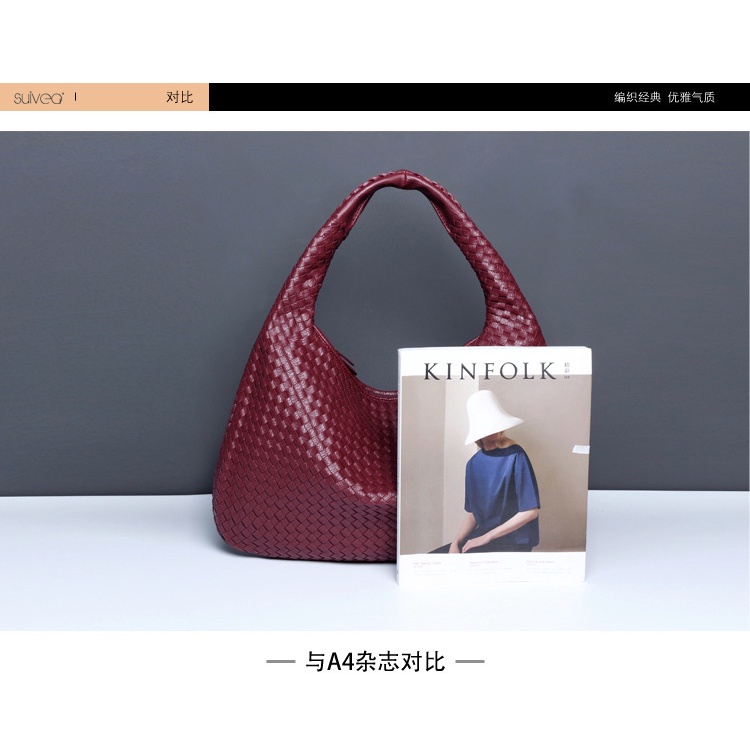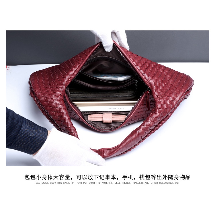 Large Women PU Leather Woven Handbag Fully Hand-Woven Underarm bag