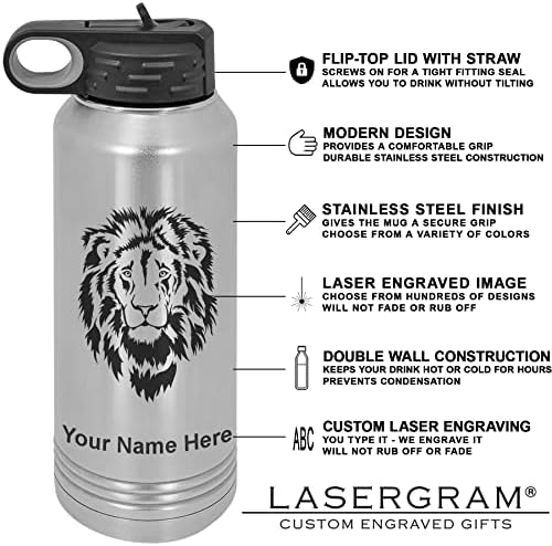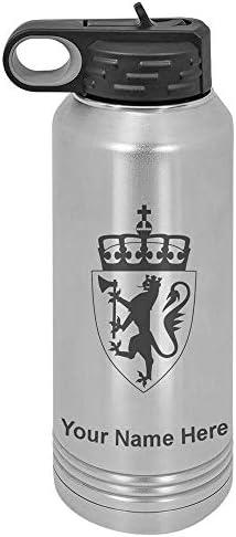 Sponsored Ad - LaserGram Personalized Water Bottle, Coat of Arms Norway, Stainless Steel Double Wall Vacuum Insulated with Flip Top Straw, Custom Engraved Gift (40oz / 1180ml Stainless)