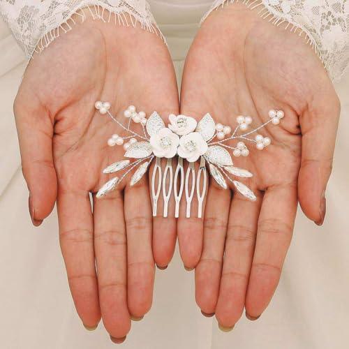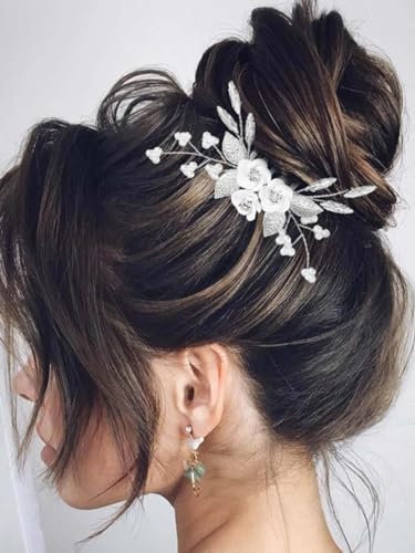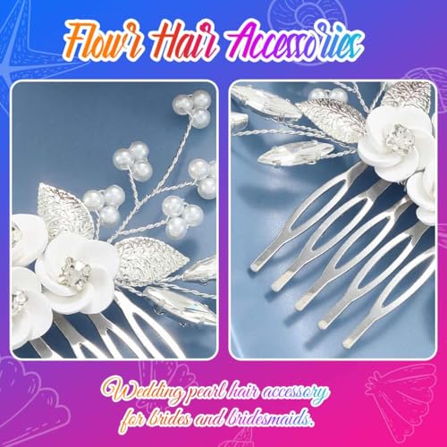 Sponsored Ad - Latious Flower Wedding Hair Comb Silver Bridal Hair Clips Pearl Hair Accessorie for Brides and Women (Silver)