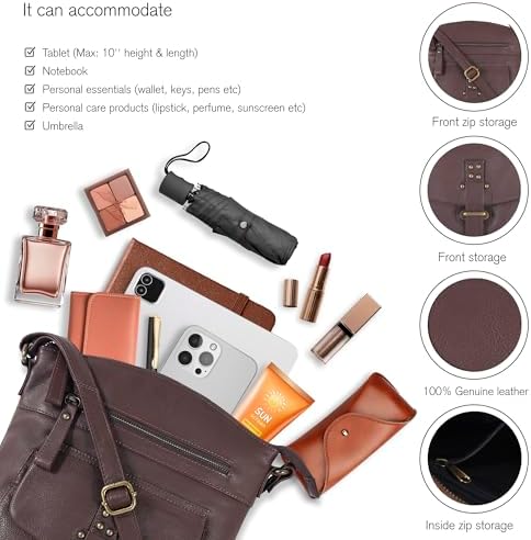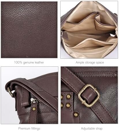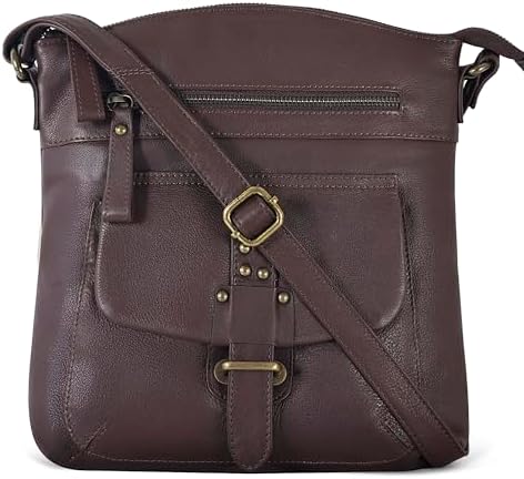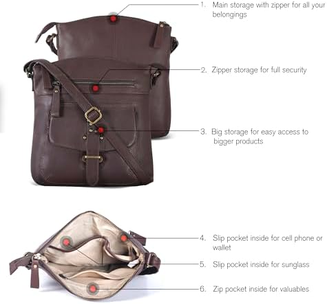 Sponsored Ad - Leather Crossbody Bag For Women With Adjustable Sling Strap - Medium Size Crossover Shoulder Handbag Purse