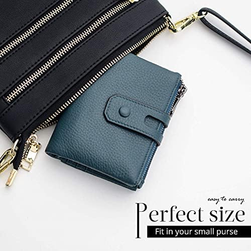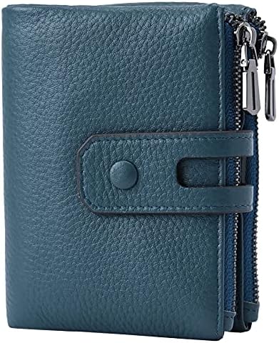 Small Soft Leather Wallet for Women RFID Blocking Ladies Card Holder with Double Zipper Pocket