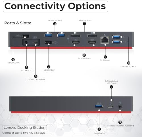 Sponsored Ad - Lenovo 40AN0135US Dock 135W Bundle - Gen 2 Dual UHD 4K Display with 135W Power Adapter + 4K HDMI Cable + 4K DisplayPort Cable + Thunderbolt Cable + Microfiber Cloth - Lenovo Docking Sta