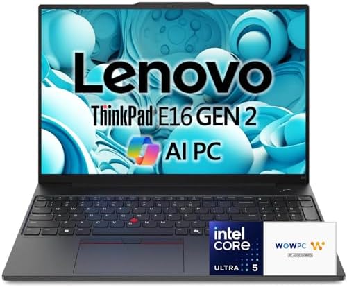 ThinkPad E16 Business AI PC Laptop, 32GB DDR5 RAM, 1TB SSD, Intel Core Ultra 5 125U 12-core Processor, 16" WUXGA 1920x1200 Display, Fingerprint, Backlit Keyboard, Windows 11 Pro, WOWPC USB
