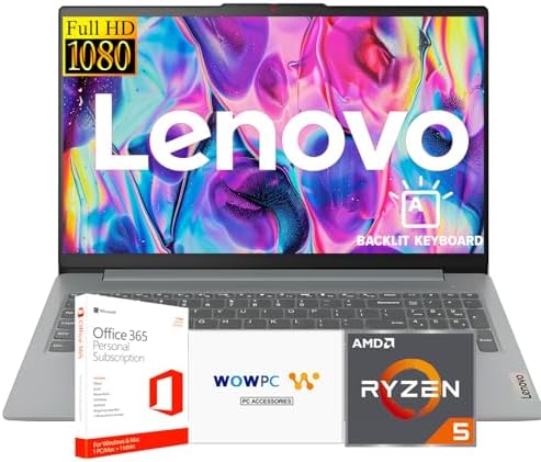 Ideapad Slim 3 Laptop for Student & Business with Microsoft Office, Backlit Keyboard, AMD Ryzen 5 5625U (Beats Intel i7-1260U), 15.6" FHD Display, 16GB RAM, 512GB SSD, Windows 11 Pro, WOWPC USB