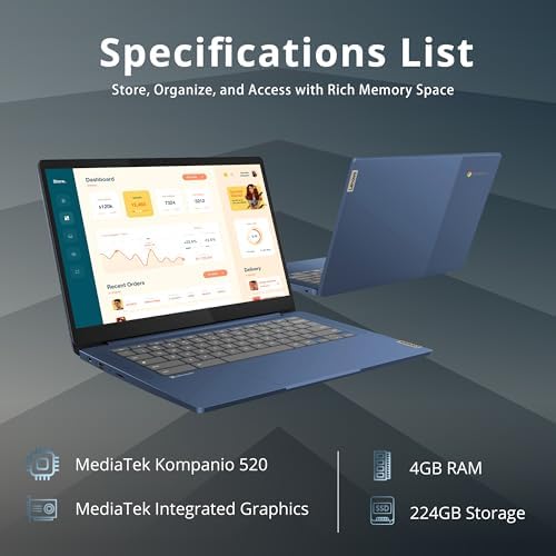 IdeaPad Slim 3 Chromebook, 14″ FHD IPS Anti-Glare Touchscreen, MediaTek Kompanio 520, 4GB LPDDR4X, 224GB Storage(64GB eMMC+160GB Docking Station Set), Webcam, WiFi 6, Chrome OS, Blue