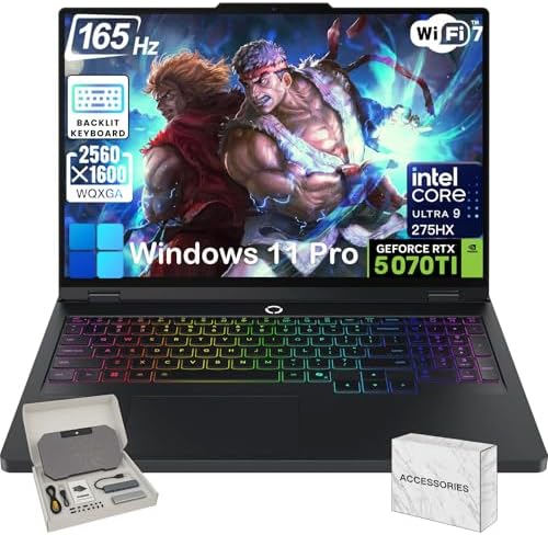 Legion Pro 5i Gen 10 Gaming Laptop (2025) - GeForce RTX 5070 Ti, Intel 24 Core Ultra 9 275HX, 32GB RAM, 1TB SSD, 16.0" WQXGA OLED 165Hz, 24zone RGB Backlit, Win 11 Pro, Wi-Fi 7, Accessories