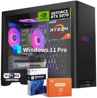 Legion Tower 5 Gen 10 Gaming Desktop PC, NVIDIA RTX 5070 12GB GDDR7, AMD Ryzen 7 7700X(Up to 5.4GHz), 64GB DDR5, 4TB SSD, Coldfront Cooling, RGB lighting, W-Fi 6E, Windows 11 Pro, w/Accessories