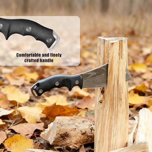 11 Inch Hatchet with Sheath, Small Compact Machete Axes, Fixed Blade Full Tang Camping Tactical Knife for Woodworking, Garden Machete Axe with Sheath for Bushcraft Yards Bushes Wood, A4SL