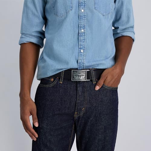 Men’s Leather Jean Belt with Removable Plaque Buckle - Big Buckle, Cowboy belt