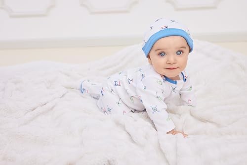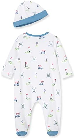 Little Me Baby Boy Clothes 2-Piece Baby Sleeper and Cap Set, 100% Cotton Footies Baby Essentials, Preemie to 9 Months