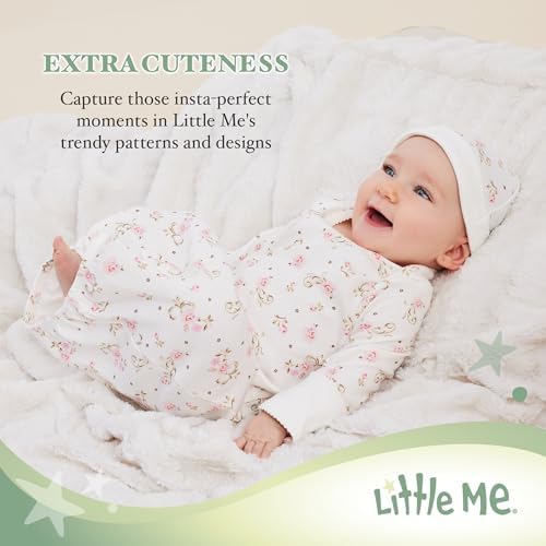 Little Me Clothes for Baby Girls' 2-Piece Nightgown and Cap Set 100% Cotton with Elastic Bottom, Baby Essentials, 0-3 Months