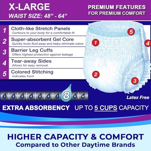 Sponsored Ad - LivDry Adult XL Incontinence Underwear, Extra Absorbency Adult Diapers, Leak Protection, X-Large, 56-Pack