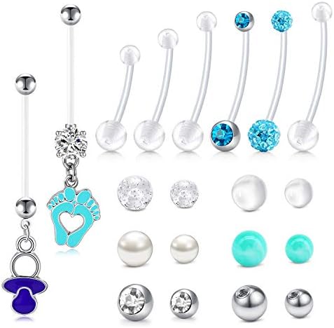 Longita Plastic Pregnancy Belly Button Rings Long Bar Navel Rings for Maternity Sport Pregnant Women Flexible Clear Belly Piercing Retainer Different Length bar and Balls for Replacement 10-32mm