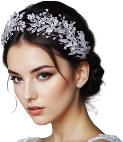 Rhinestone Wedding Headband Handmade Leaf Crystal Bridal Headpieces for Wedding Hair Accessories for Brides and Bridesmaid