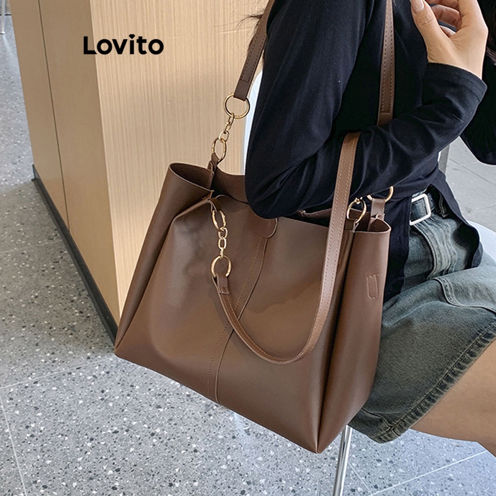 Material Quality:Excellent Colour:Brown Appearance:Excellent Received my item in good order and condition. It’s a large capacity shoulder bag. Leather material is soft. Very versatile, too. I love how casual looking it is yet very fashionable. Perfect for everyday use. Thank you, Lovito and Shopee!