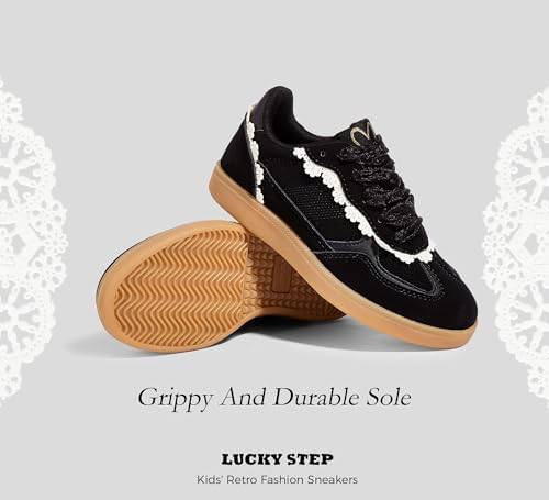 Sponsored Ad - Kids Lace Detail Fashion Retro Sneakers Girls Casual Gum Rubber Sole Dual Laces Walking Running Shoes for Big&Little Kid and Toddler