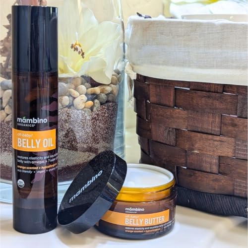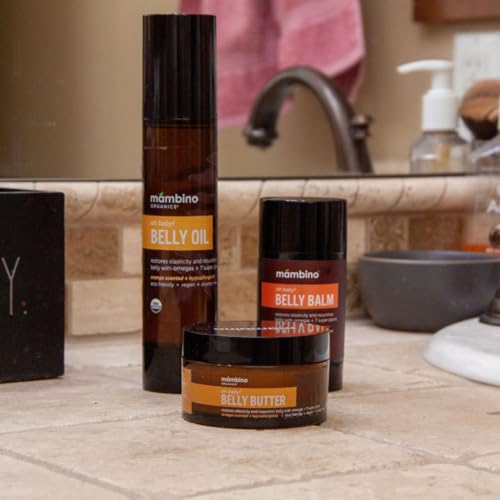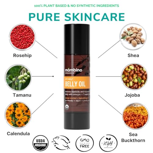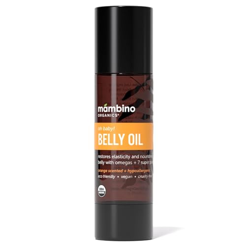 Mambino Organics Oh Baby! Belly Oil for Pregnant Women, Organic Stretch Mark Oil for Pregnancy, Postpartum Skin Elasticity, Hydration, With Tamanu, Shea Butter, Calendula, Vegan, Non-GMO, 2 fl oz