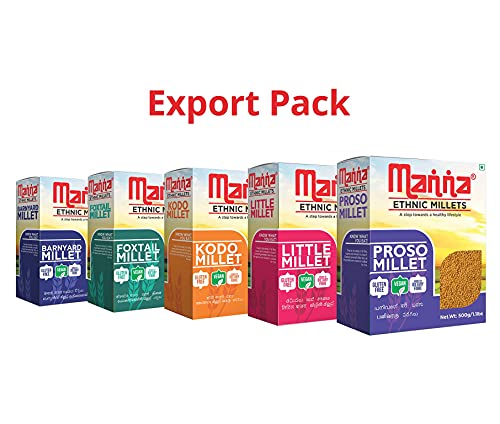 Manna Millets 5lb - natural grains | hulled | foxtail, kodo, little, barnyard, proso (each 1 pound) gluten-free, protein, low carb, high fibre-2.27Kg