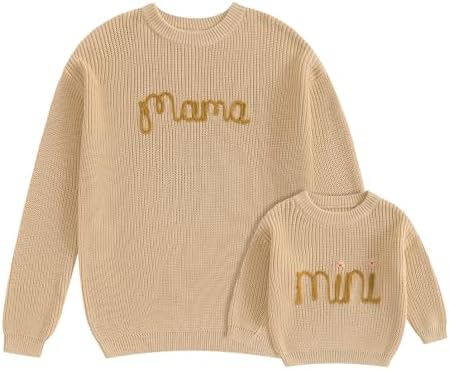 Sponsored Ad - Mommy and Me Matching Outfits Mama and Mini Long Sleeve Crewneck Sweater Pullover Tops Mother Baby Matching Clothes