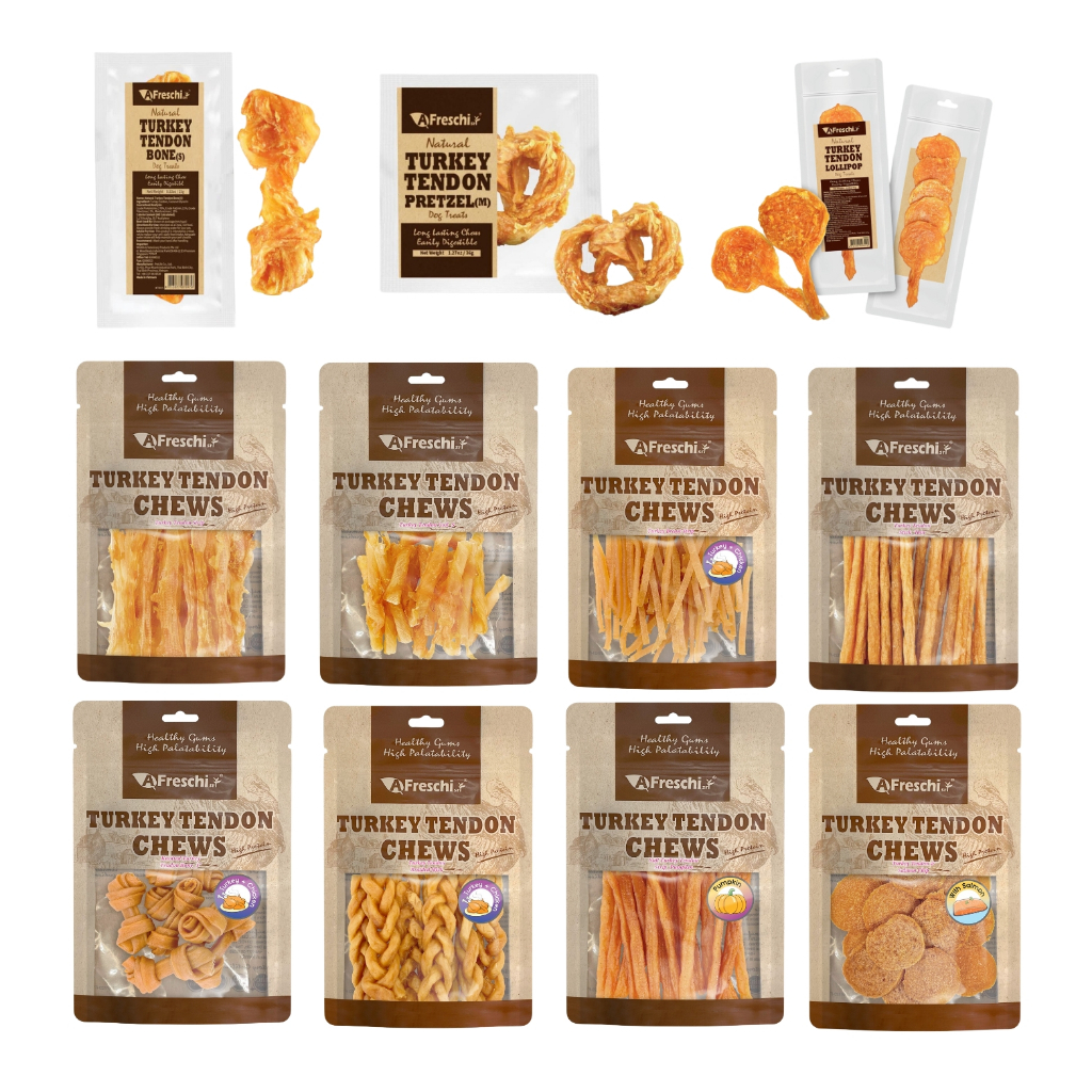 [Mixable] Afreschi Turkey Tendon Dog Chew Treats - Bone, Pretzel, Lollipop, Strip, Coil, Knotted